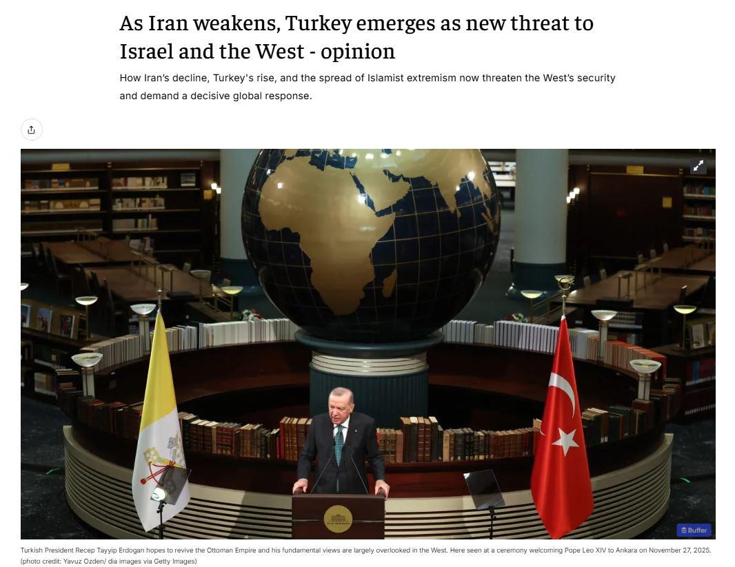 Jeruselam Post, “Türkiye, Suriye’deki tartışılmaz varlığının ötesinde, Gazze Şeridi’nde de agresif bir şekilde yerleşerek İsrail’i hem güneyden hem de kuzeyden kuşatacak şekilde konumlanıyor.” ifadelerine yer verdi.