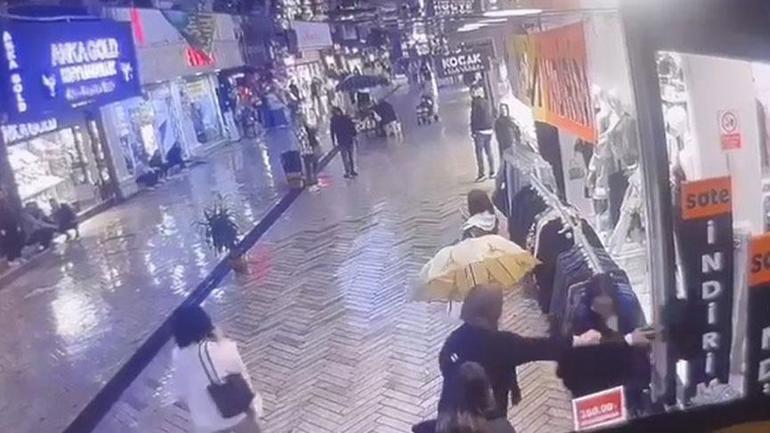 V.D.’nin polis merkezindeki işlemleri devam ederken, olaylar bir mağazanın güvenlik kamerası tarafından kaydedildi.